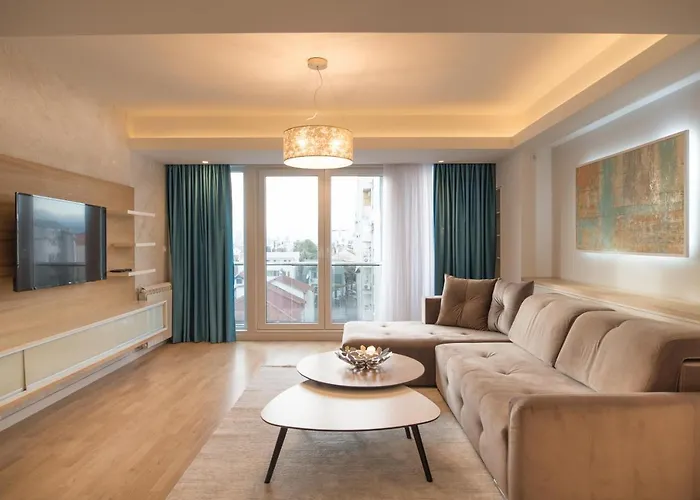 Daire, Üsküp şehir merkezine 4 km uzaklıkta ve The Cube escape room'a uzak değildir. Bu daire Rahibe Teresa Anıt Evi'a 20 dakikalık yürüme mesafesindedir. Seçkin yemekleri sunan Concept 37, Bravo's, tesisten 100 metre uzaklıkta bulunur. Popüler Makedonya Meydanı'a arabayla birkaç dakikada varılır.